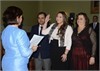 Sen. Sandra Cano (D-Dist. 8, Pawtucket) being sworn into the Rhode Island Senate by Secretary of State Nellie M. Gorbea at a ceremony in the Senate Lounge. Joining Sen. Cano is her father, Roberto Cano, and her mother, Isabel Franco.
